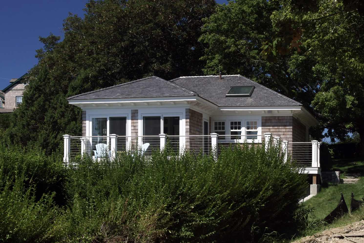 This small, poorly laid out 1950’s beach cottage, had fallen into serious disrepair was in need of a complete renovation. Stringent coastal requirements forced a keen eye to be focused on architectural planning, town and coastal approvals and construction strategy. This musty structure was transformed into a lovely year-round get-away. The reconfiguration of the entire interior space expanded the living area making the most of the gorgeous surrounding views and allowed for two bedrooms, a kitchen, a full size bathroom with washer/dryer and sun-filled living area.