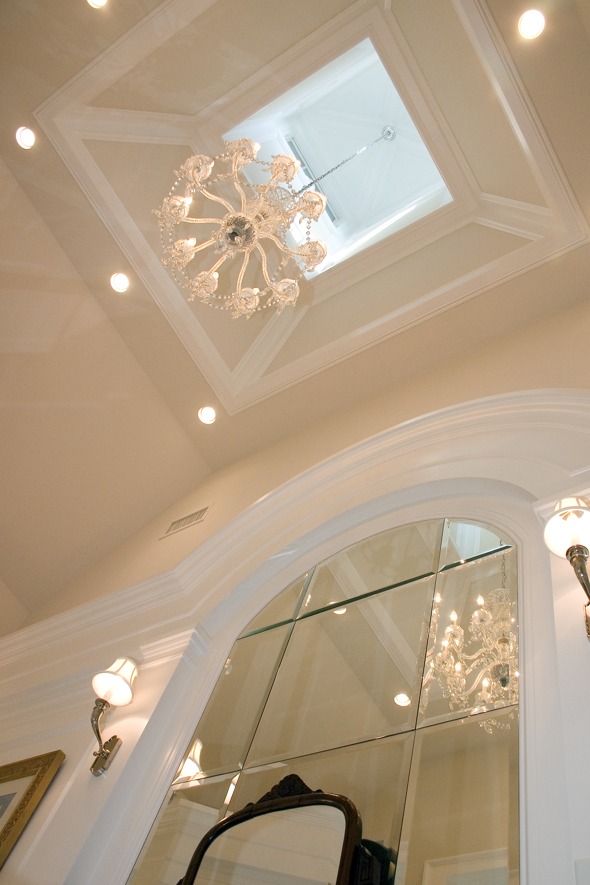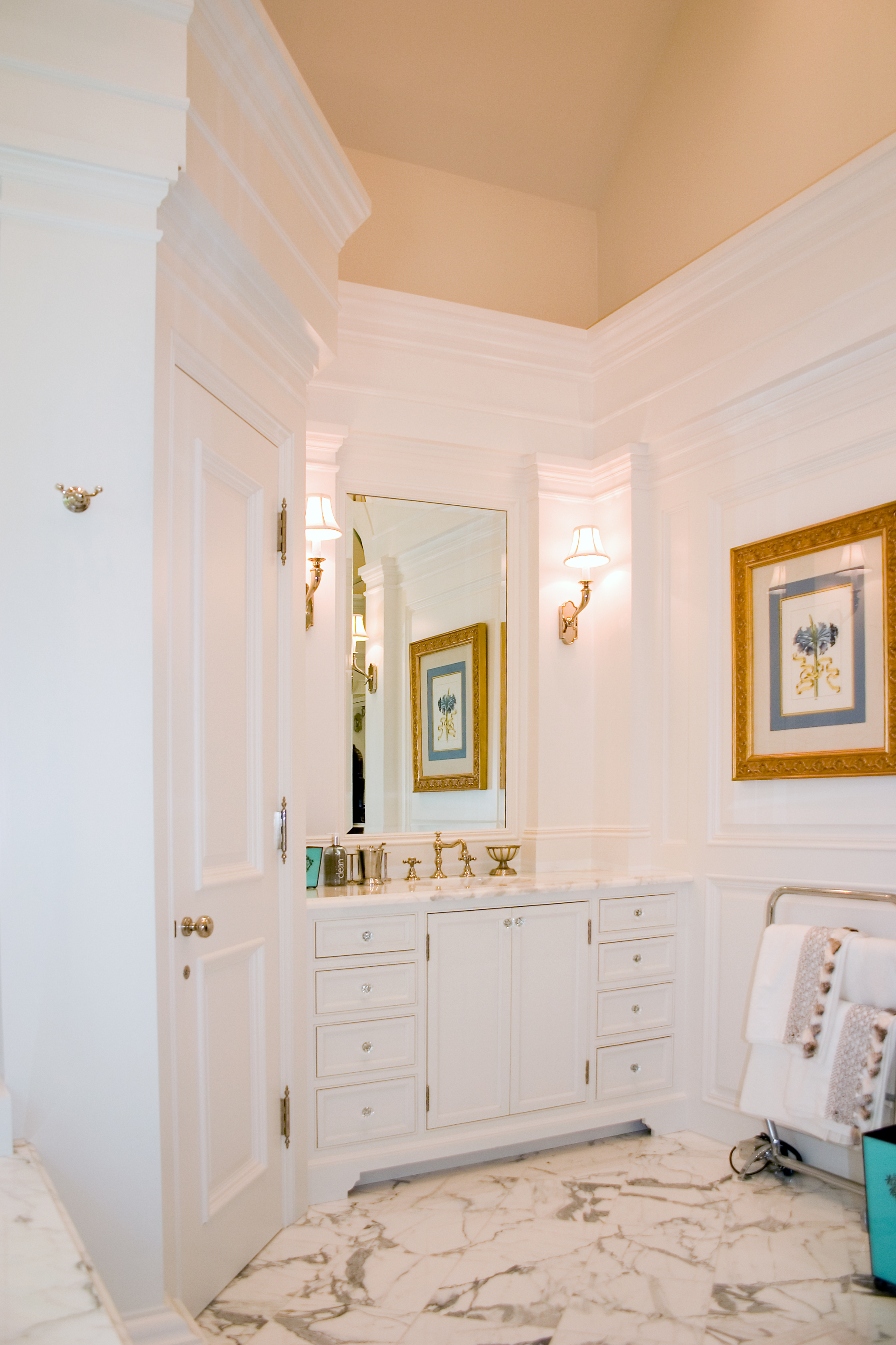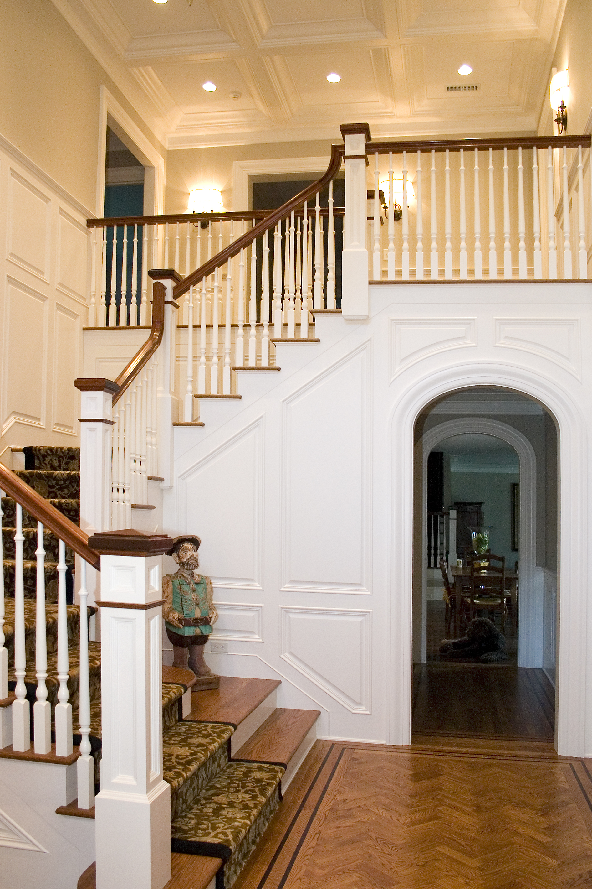 The front porch with fieldstone combined with an arched entry and the custom mahogany front door with sidelights was designed to capture buyers’ attention. Custom kitchen, exquisite moldings, large formal areas, marble and granite were all featured on the interior to further attract interest in this luxury price range. Our team also incorporated a distinctive front staircase, a master bath with crystal chandelier hung within a 35-ft. cupola and a children’s arts and crafts area to keep the audience interested.