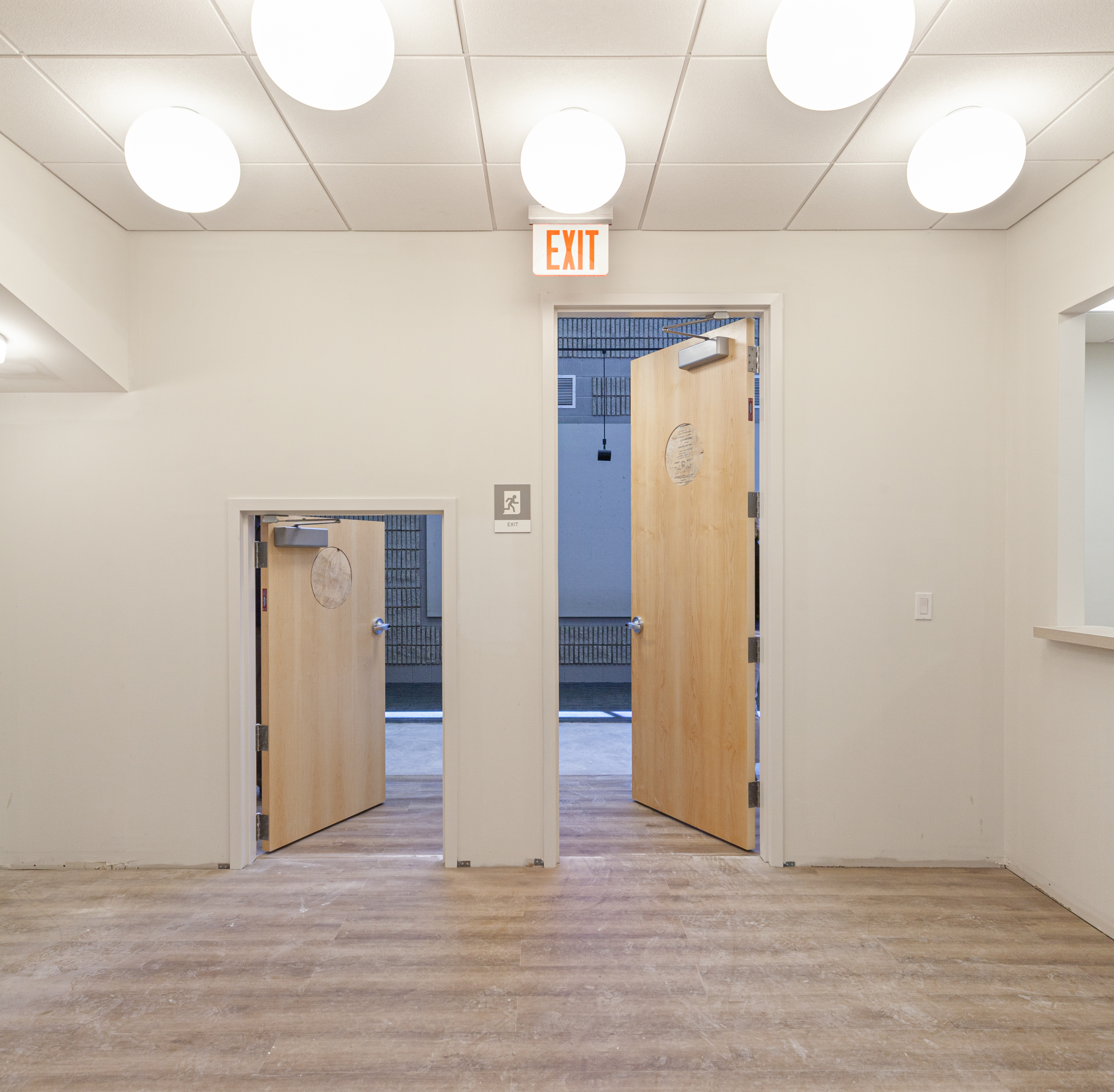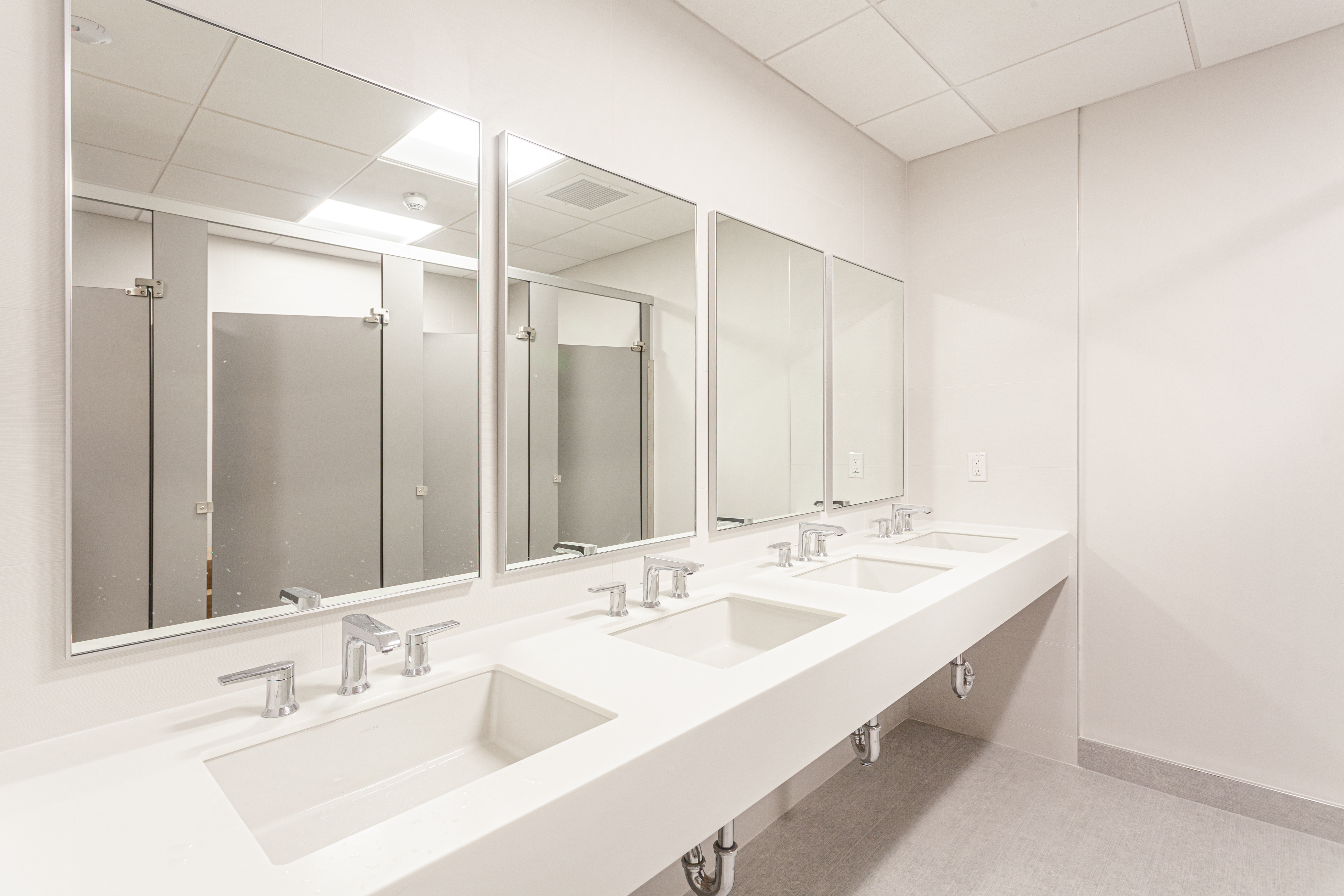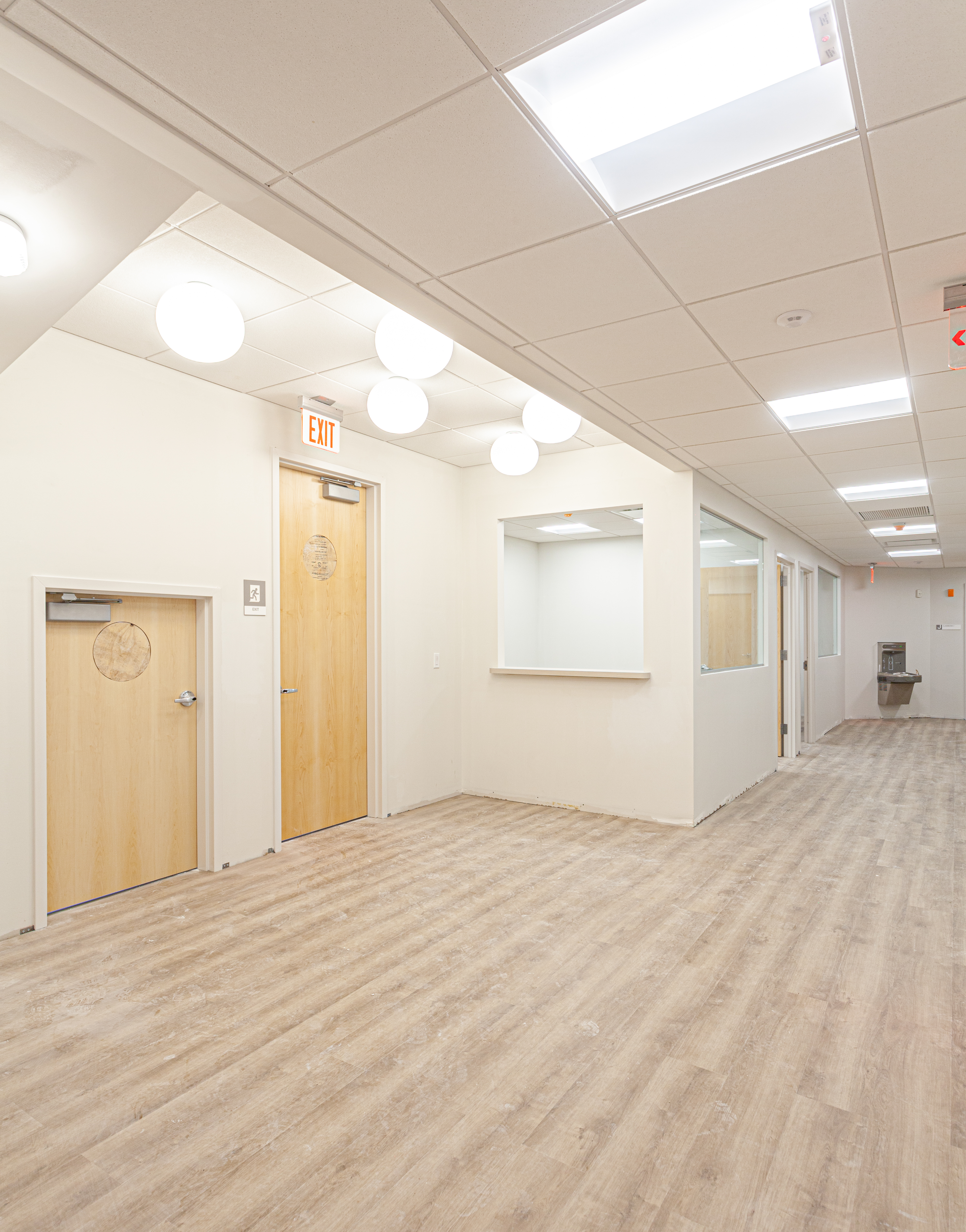 A few years later in 2020, the JCC was in need for another major renovation due to its outdated locker rooms. 100% of the interior of the men’s and women’s locker rooms were demolished and re-built. During demolition we discovered severe deterioration in the structure and old plumbing pipes completely rusted through. After tackling the mechanical and structural deficiencies, we were able to focus on the overall aesthetics of the new space. Some exciting features of the locker rooms are the State-Of-The-Art sauna and steam rooms that create a true spa-like feeling. Multi-textured wall tiles which spans the entire length of the locker room accentuates the spa-like atmosphere. All areas of the JCC are now ADA compliant with handicap accessible showers and bathroom stalls with room for an aid to accompany the member. For those who chose to swim, a swimsuit spin dyer is conveniently built-in to all locker rooms. Despite the COVID-19 pandemic, KARP was not slowed down and completed the project in 8 months. New ERV units were installed to double the capacity of air circulation for the renovated space. Warmly lit locker rooms bring out the canvas of monochrome greys and whites which offer a relaxing and inviting atmosphere post workout.