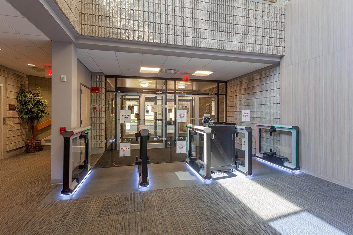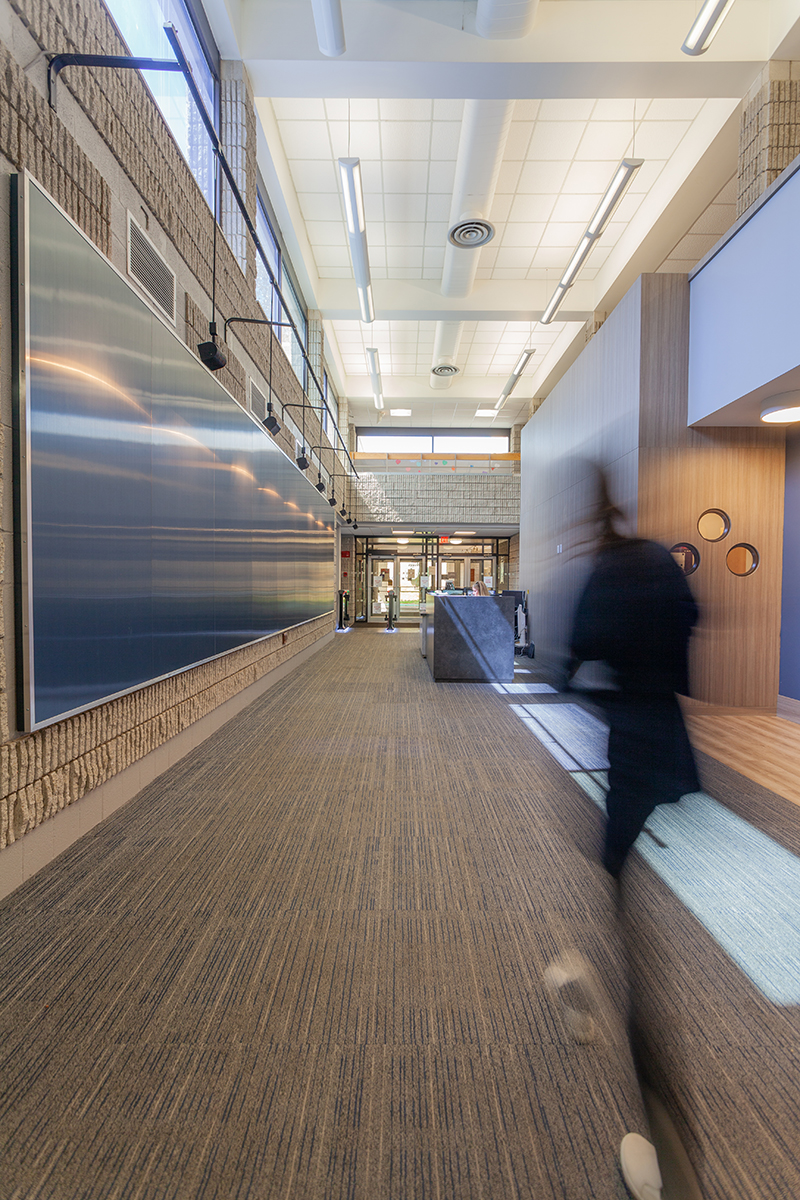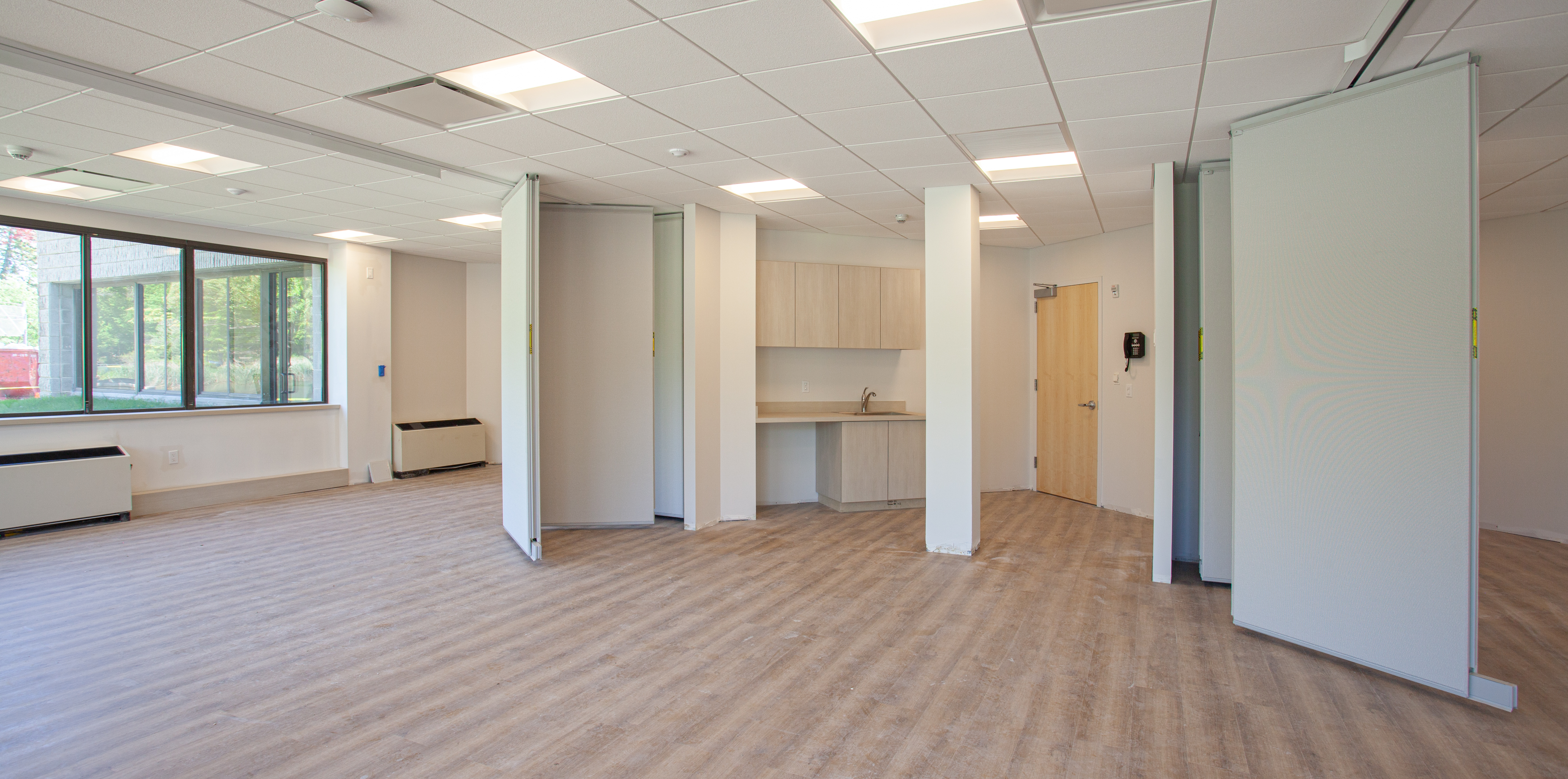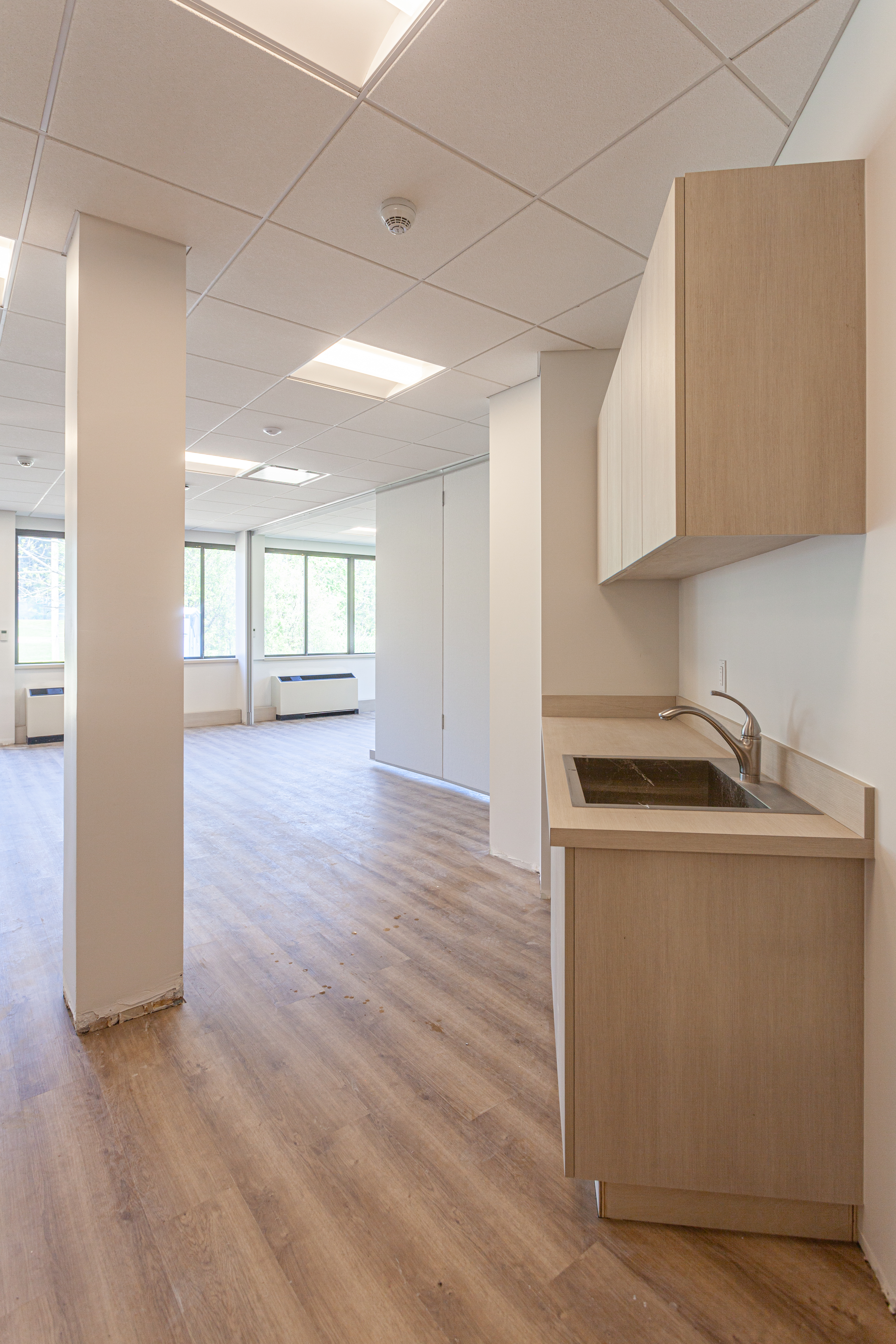 A few years later in 2020, the JCC was in need for another major renovation due to its outdated locker rooms. 100% of the interior of the men’s and women’s locker rooms were demolished and re-built. During demolition we discovered severe deterioration in the structure and old plumbing pipes completely rusted through. After tackling the mechanical and structural deficiencies, we were able to focus on the overall aesthetics of the new space. Some exciting features of the locker rooms are the State-Of-The-Art sauna and steam rooms that create a true spa-like feeling. Multi-textured wall tiles which spans the entire length of the locker room accentuates the spa-like atmosphere. All areas of the JCC are now ADA compliant with handicap accessible showers and bathroom stalls with room for an aid to accompany the member. For those who chose to swim, a swimsuit spin dyer is conveniently built-in to all locker rooms. Despite the COVID-19 pandemic, KARP was not slowed down and completed the project in 8 months. New ERV units were installed to double the capacity of air circulation for the renovated space. Warmly lit locker rooms bring out the canvas of monochrome greys and whites which offer a relaxing and inviting atmosphere post workout.