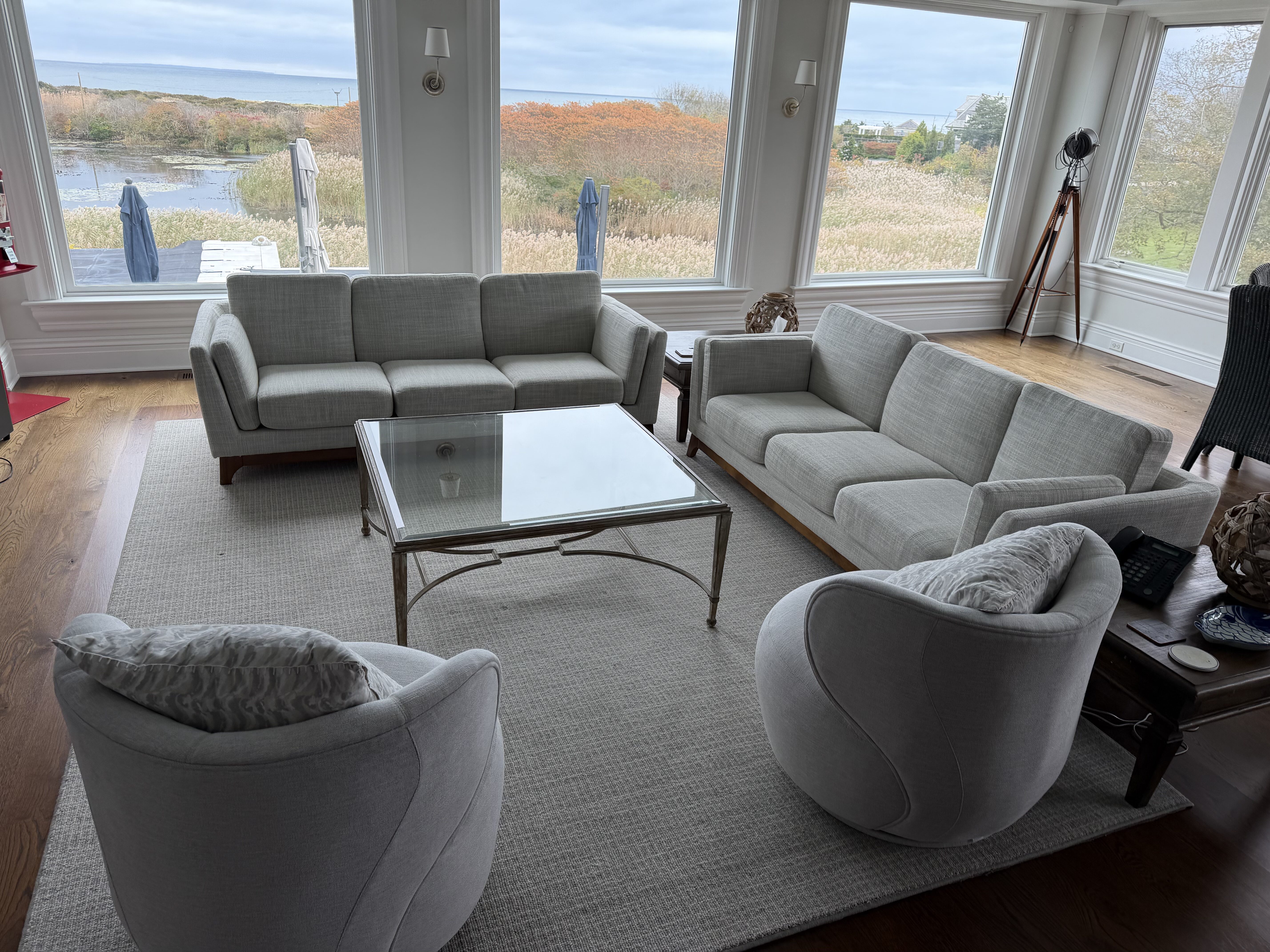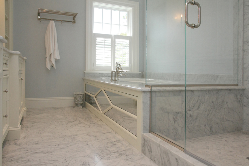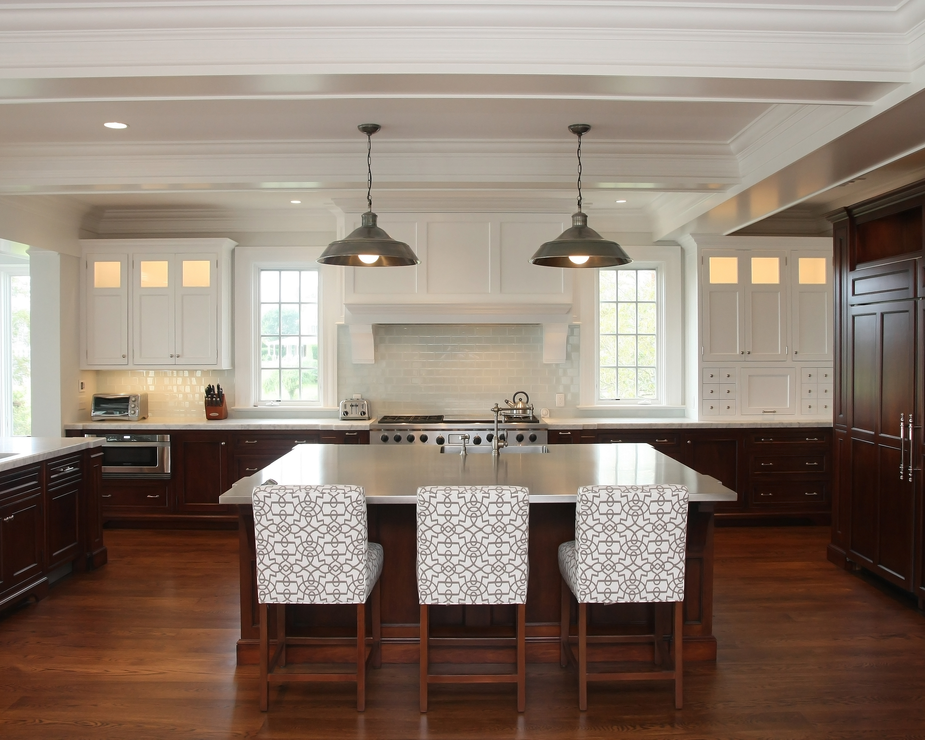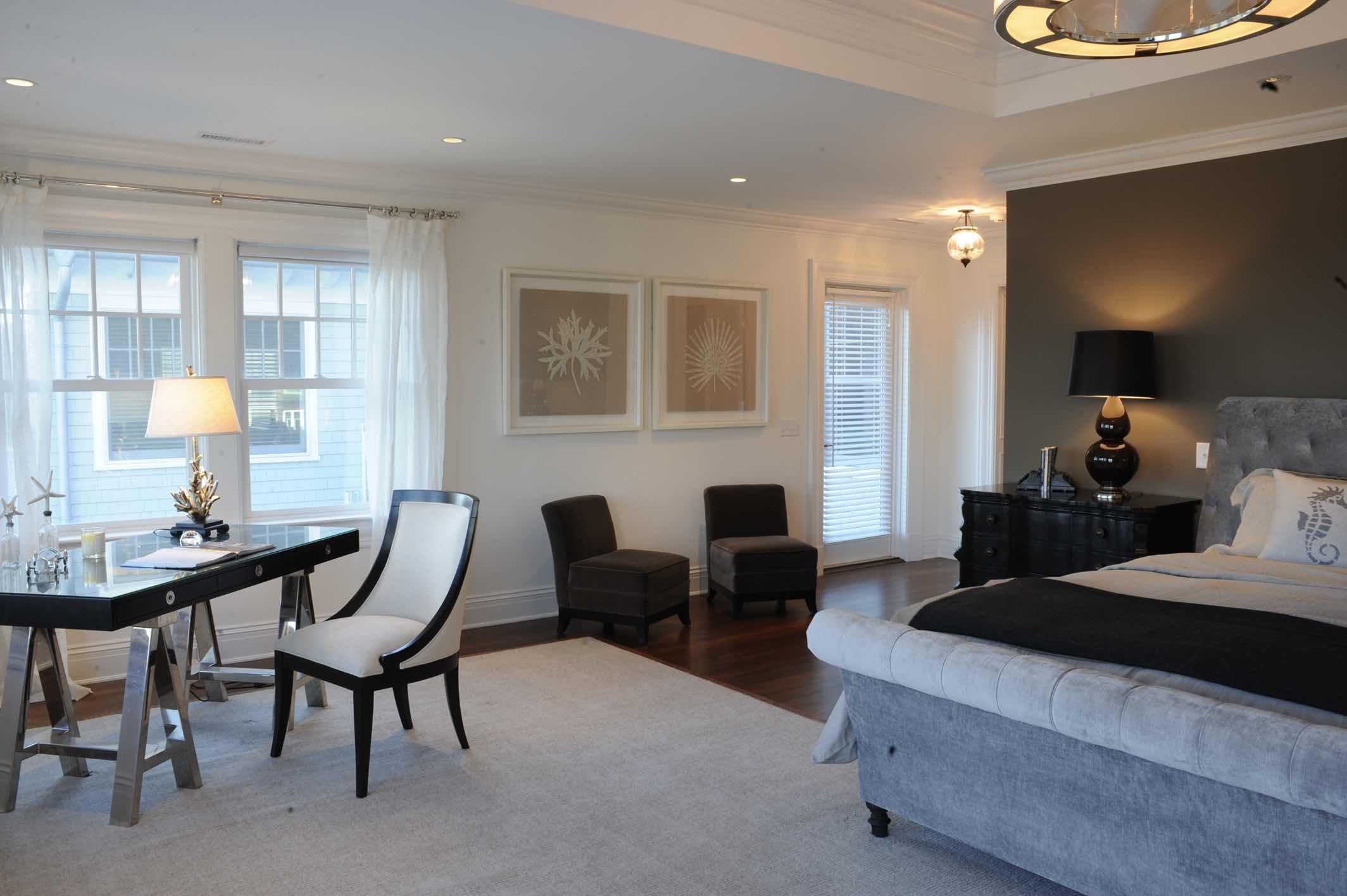 This truly custom house included reuse of the original front door stone entry and columns, which were painstakingly removed, stored and then reinstalled at the relocated front door entry. As the client wanted this house to stand the test of time, the structure was largely constructed of steel from the basement to the roof. The use of new green products was considered for everything and used for the roof, insulation and windows. The interior of the house has exquisite detail in every room, ranging from multi-piece crown moldings to solid eight-foot custom doors to secret rooms hidden behind bookcases. Another charming detail was a cupola with a library ladder to experience 360-degree ocean views.