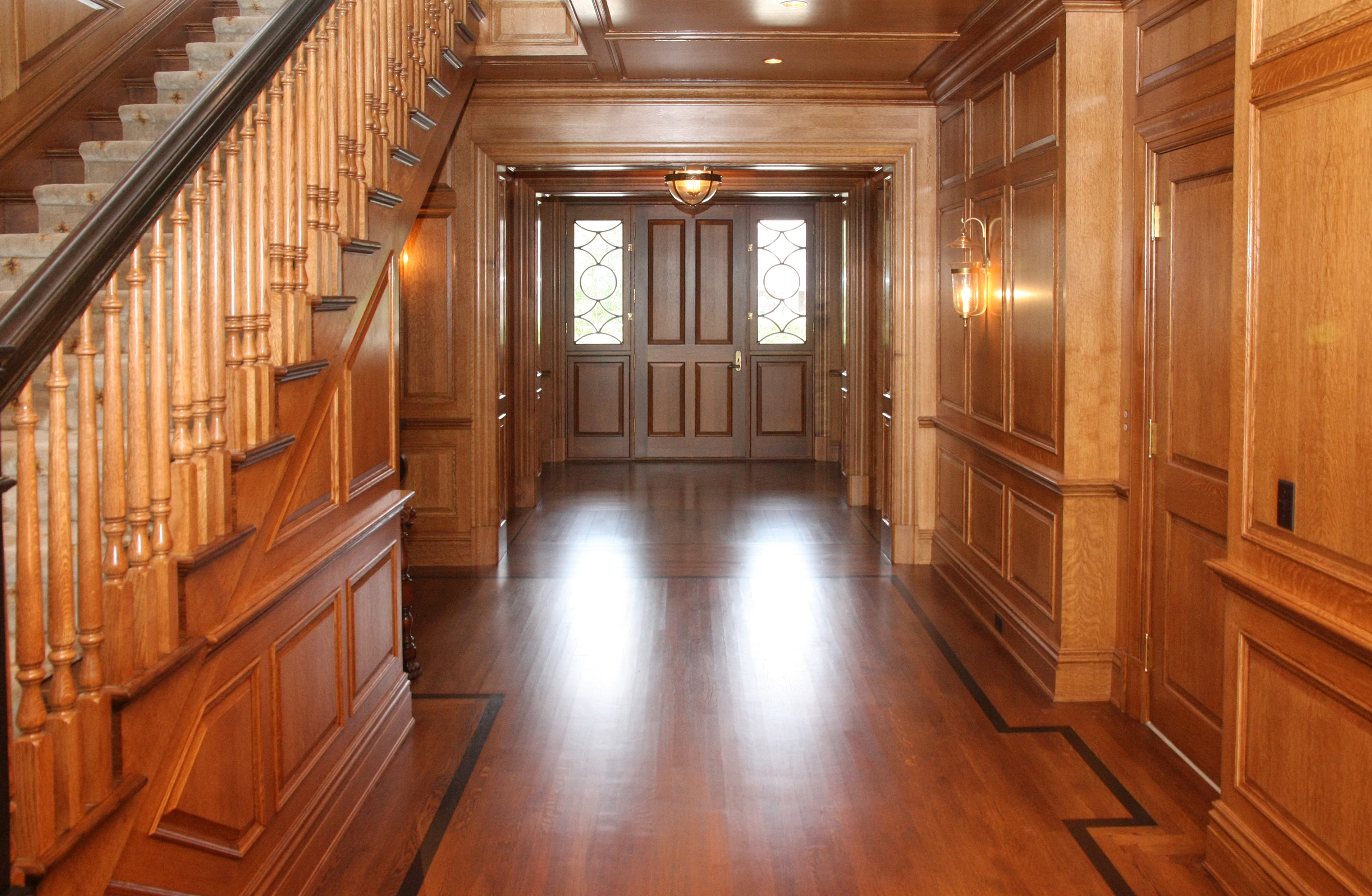 This project followed to the textbook definition of the term “custom” as every detail from the quarter sawn oak entry to the tray ceiling master bedroom and hidden doorways was to the precise and exacting specification of the owner. The owner wished to have input on all decisions for his new house, ranging from house orientation to maximize views, to securing and using the same stone as found in the original house.