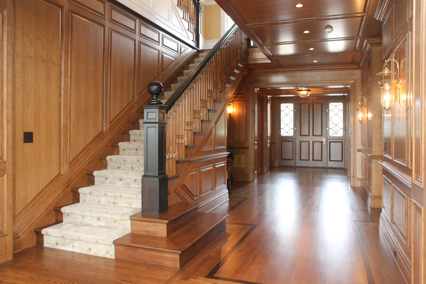 The interior of the house has exquisite detail in every room, ranging from multi-piece crown moldings to solid eight-foot custom doors to secret rooms hidden behind bookcases.